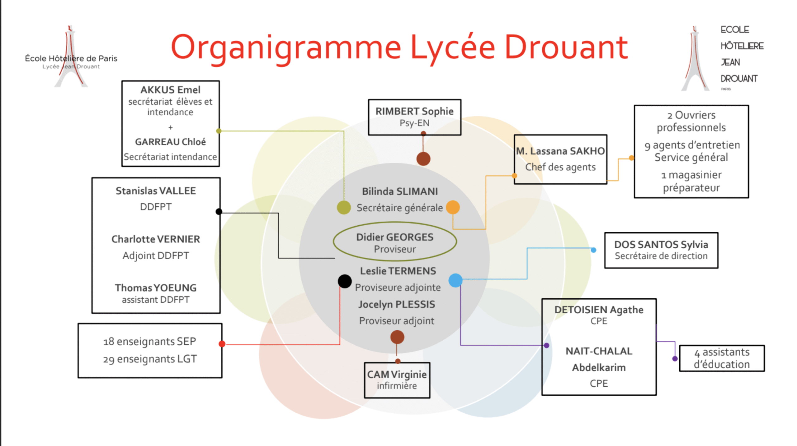 Etre et avoir été formé au lycée hôtelier Jean Drouant, c’est faire partie d’une grande famille et d’un réseau dont les membres sont présents partout dans le monde. École de la tradition culinaire dont les arts de la table et de l’hôtelerie mais aussi de la modernité contemporaine, le lycée Jean Drouant est le premier établissement hôtelier de France à avoir dé-genré son règlement intérieur.